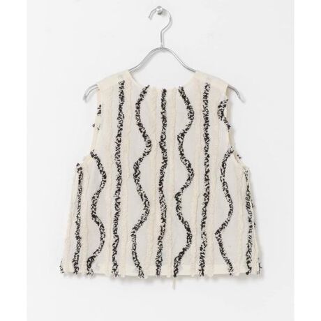 フロントは紐とボタンでスタイリングが楽しめ、1枚でトップスとしても、レイヤーとしても活躍するベスト。