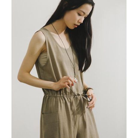 スラブ糸の染着差と、ヨコ糸に配列したラミーの染め分けにより、イタリアのヴィンテージリネンのような深みあるシャンブレーを表現した国内素材を使用した大人サロペット。