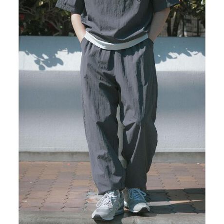 タスランナイロン素材を使用したイージージョグパンツは、さらっと涼しい穿き心地に加え、水をはじく撥水性と紫外線対策にも配慮した機能を備えた一着。お手入れも簡単でデイリーに取り入れやすく、ウエストはイージー仕様でストレスフリー。すっきりとしたシルエットで大人カジュアルにも馴染み、デイリーからアクティブシーンまで幅広く活躍する、毎年人気のアイテムです。同素材を使用した、タスランナイロンクルーネックドロストTシャツ(IT26230-1012014)とセットアップでの着用もおすすめです。