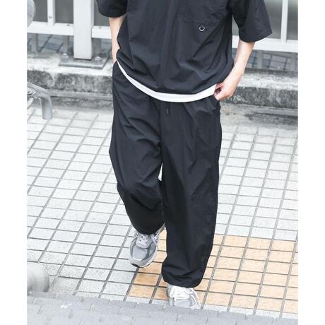 タスランナイロン素材を使用したイージージョグパンツは、さらっと涼しい穿き心地に加え、水をはじく撥水性と紫外線対策にも配慮した機能を備えた一着。お手入れも簡単でデイリーに取り入れやすく、ウエストはイージー仕様でストレスフリー。すっきりとしたシルエットで大人カジュアルにも馴染み、デイリーからアクティブシーンまで幅広く活躍する、毎年人気のアイテムです。同素材を使用した、タスランナイロンクルーネックドロストTシャツ(IT26230-1012014)とセットアップでの着用もおすすめです。