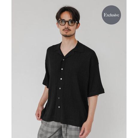 和紙混の軽やかな凹凸が出るリブ素材で涼しげに着られる半袖シャツ
