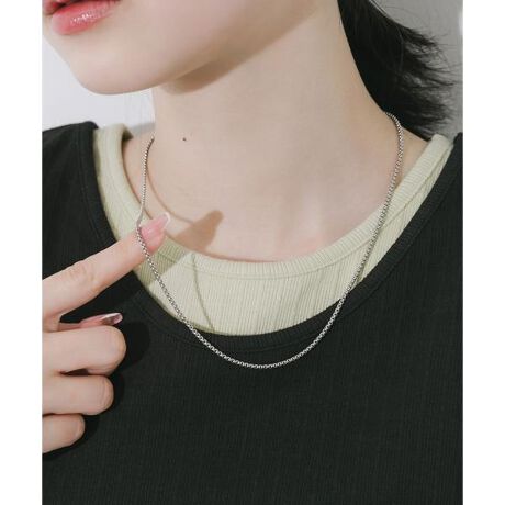 一般的なチェーンよりも密度が高く光を面で捉えて反射するため、首元に上品で滑らかな光沢を添えてくれます。