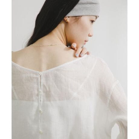 オリジナルで生地から作り上げた、リネン100%のメッシュ素材を使用した2WAYブラウス。
