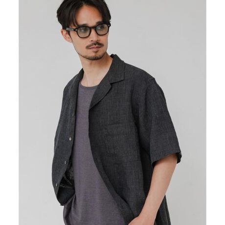 【太番手リネンが織りなす、奥行きのあるカラーシャンブレー。オーバーサイズで魅せるオープンカラーシャツ】