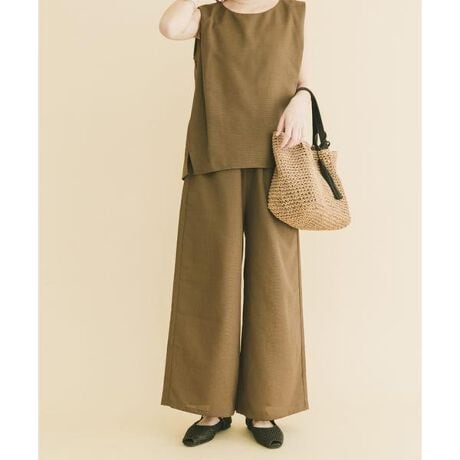 軽やかなリネンライク素材が涼しげな印象を与えるセットアップ。さらりとした質感で着心地もよく、きちんと感と抜け感を両立します。単品使いもできるため、デイリーから通勤まで幅広く活躍。シンプルながら計算されたシルエットで、自然とスタイルアップも叶えます。毎シーズン支持される理由がわかる、着回し力の高い一着です。