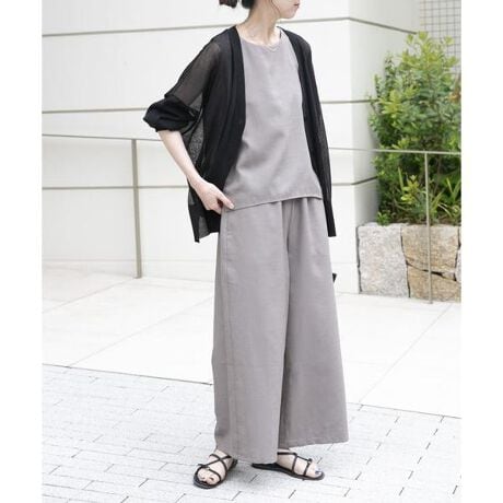 軽やかなリネンライク素材が涼しげな印象を与えるセットアップ。さらりとした質感で着心地もよく、きちんと感と抜け感を両立します。単品使いもできるため、デイリーから通勤まで幅広く活躍。シンプルながら計算されたシルエットで、自然とスタイルアップも叶えます。毎シーズン支持される理由がわかる、着回し力の高い一着です。