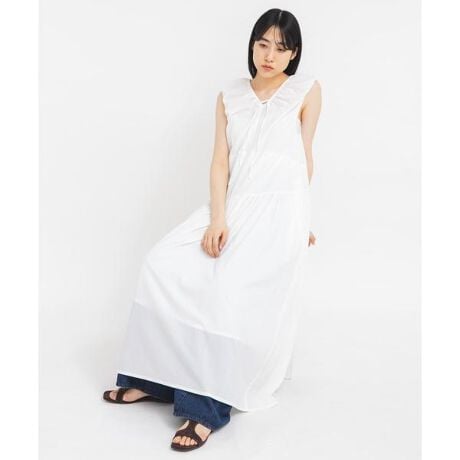 1枚でスタイリングが決まるロングワンピース。裾に向かってボリュームがあるにもかかわらず、ロー切り替えが大人な印象に仕上げてくれます。前後2WAYの着用が可能で、二の腕カバーが期待できるフレンチスリーブもポイントです。ドライタッチな素材で清涼感があり、夏に大活躍間違いない1着です。