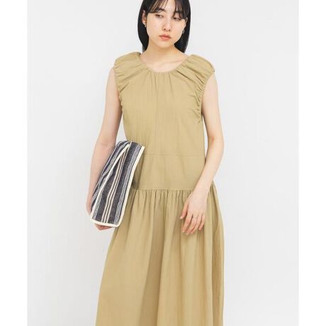 1枚でスタイリングが決まるロングワンピース。裾に向かってボリュームがあるにもかかわらず、ロー切り替えが大人な印象に仕上げてくれます。前後2WAYの着用が可能で、二の腕カバーが期待できるフレンチスリーブもポイントです。ドライタッチな素材で清涼感があり、夏に大活躍間違いない1着です。