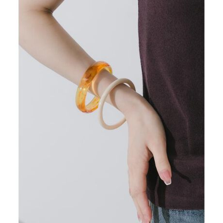 表情の異なるアクリル素材を組み合わせた、存在感たっぷりのバングルセット。