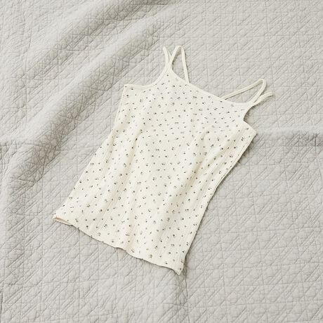 繊細な花柄プリントは主張しすぎず、インナーとしてもトップスとしても活躍します。