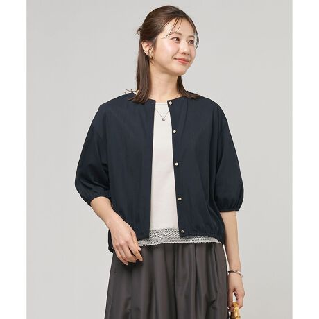 ■デザインふんわりとしたボレロ風シルエットのクルーネックカーディガン。首元にきらりと光るゴールドのボタンがアクセントになった、シンプルながら上品な1着です。ワンピースの上にさらっと羽織るスタイルにもバランス良くマッチし、デイリーからちょっとしたお出かけ、オフィスシーンまで幅広く活躍します。冷房対策や日差しよけとして、バッグに入れて持ち歩くのにも便利です。カラーは、清潔感があり顔周りを明るく見せるホワイト(#001)、肌なじみが良く上品で柔らかな印象のグレージュ(#033)、シックで落ち着きのあるチャコールグレー(#035)、知的で上品な印象のネイビー(#075)の4色展開です。