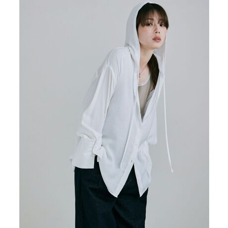 etoll. エトル アウターにもトップスにもなってくれる、透明感とマニッシュな印象を掛け合わせたシアーのフードシャツ。