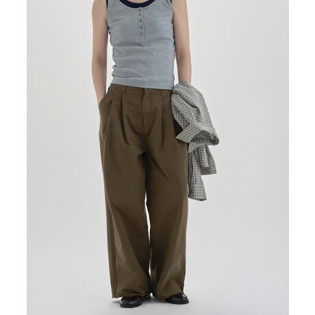 etoll. エトル ハリのある綿素材にワークテイストな雰囲気を落とし込んだタックペインターパンツ。
