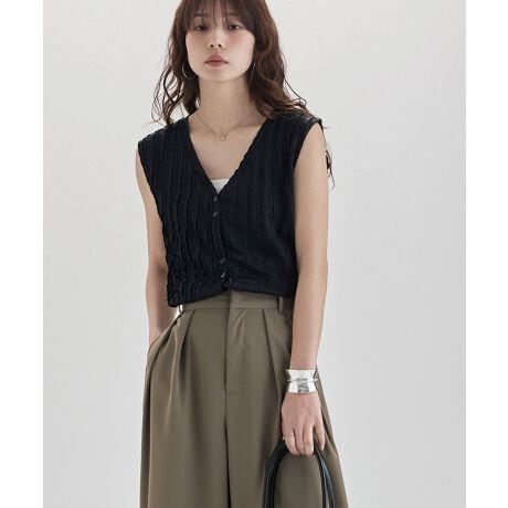 奥行きをもたらすとともに縦のラインを印象付け、自然に華奢見えへと導いてくれる優れもの。