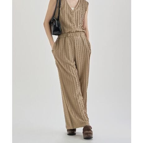 上下をそろえた華のあるリラックス感が、センシュアルな女性らしさを演出してくれます。