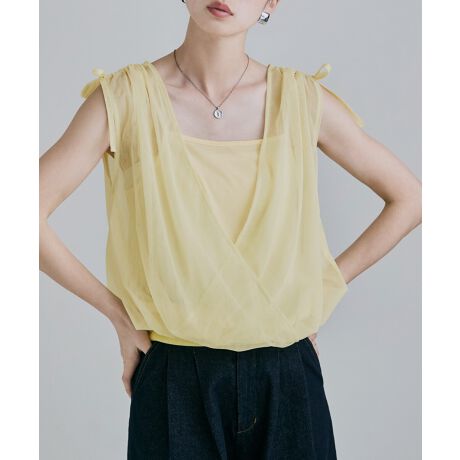 ショルダーのリボンデザインが愛らしいノースリーブトップスです。