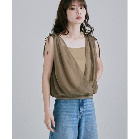 ショルダーのリボンデザインが愛らしいノースリーブトップスです。