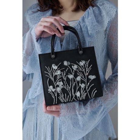 niana ニアナ ボタニカルモチーフのビーズとスパンコール刺繍を施したスクエアハンドバッグ。