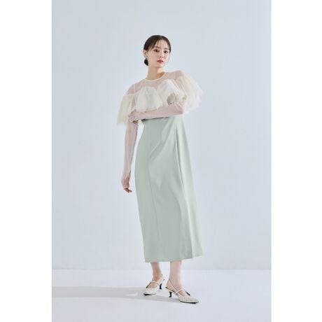 スカート部分はすっきりとしたIラインで左裾にスリットを入れることで足捌きも楽々。