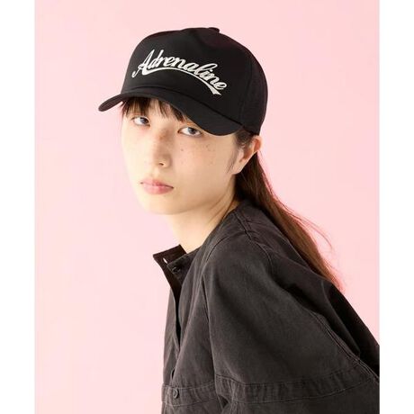 後部にメッシュ生地を使用した、5パネル仕様のトラッカーキャップを製作しました。頭部分とブリムにはハリのあるTCツイル生地を使用し、後部にはポリエステルのダブルメッシュを採用。もちろんトラッカーキャップのお約束であるスナップバックのアジャスターも備えています。被りの深さはDEEP6型に近い深めのフィット感で、様々な頭サイズに対応します。そして5パネル特有の広いフロント部分には、ベースボールチームのロゴのような筆記体で「Adrenaline(アドレナリン)」の刺繍を入れました。人が興奮したりテンションが上がったときに体内で分泌される、あのアドレナリンです。
