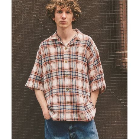 通気性の良いパナマ織り素材を使用したパターンシャツ。