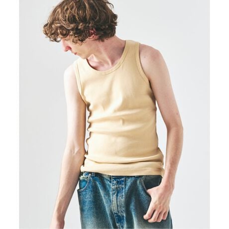 程よくフィット感のあるリブ素材を使用したタンクトップ。