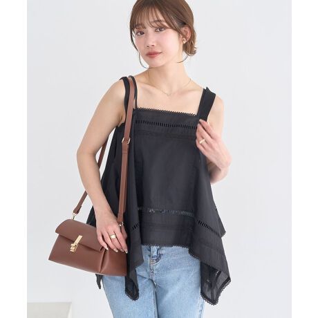 繊細レースが映える軽やかハンカチデザインゆったりと広がるハンカチ風のフォルムが、気になる部分を自然にカバーしつつスタイルを美しく見せてくれるビスチェです。裾にあしらわれたピコレースがさりげない可愛らしさを添え、シンプルな装いにもアクセントをプラスします。軽やかな着心地で動きやすく、デイリーに取り入れやすいのも魅力です。インナー次第で表情を変えられるため、カジュアルにもきれいめにも対応できる万能な一枚です。季節を問わずレイヤードスタイルを楽しめるので、着回し力の高さもポイントです。透け感[なし]
