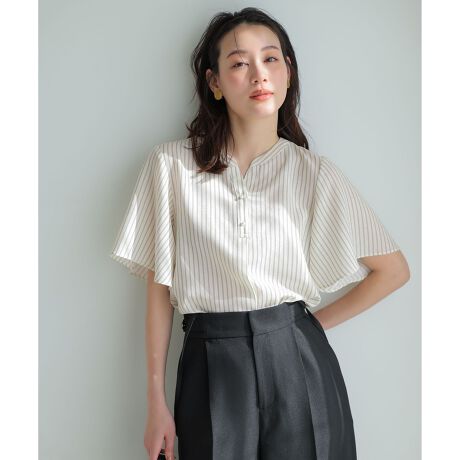 #ANYSIS #エニシス #エニィシス #エニスィス #レディース #スキッパー #パールボタン #フレア袖 #ブラウス #シャツ #トップス #半袖 #脇スリット #オンオフ兼用 #オフィスコーデ #ストライプ #通勤 #きちんと感 #着回し #きれいめ #オフィス #オフィススタイル #オフィスカジュアル #お仕事コーデ #上品 #洗える #ウォッシャブル