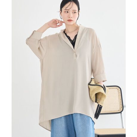 やさしく広がるシルエットが女性らしい雰囲気を演出し、着るだけでこなれた印象を与えてくれます。背面のギャザーが動きのある表情をプラスし、後ろ姿まで抜かりなくおしゃれに見せてくれるのが魅力です。スタンドカラーのデザインが顔まわりをすっきりと整え、きちんと感もプラスします。ゆとりのある着心地で長時間でも快適に過ごせるため、日常使いからお出かけまで幅広く活躍します。シンプルで合わせやすく、パンツやレギンスと相性が良いのでコーディネートに迷わず着回しを楽しめます。大人のカジュアルスタイルにおすすめの一着です。