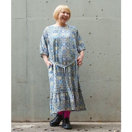 目を引く個性的な柄が印象的な、存在感たっぷりのワンピースが登場です。