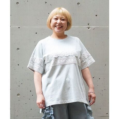 カジュアルなベースに、胸元と袖口へあしらった2種類のレーステープで、ほんのり甘さをプラス。