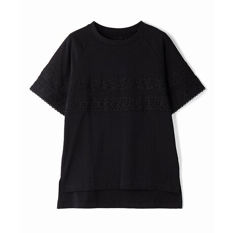 カジュアルなベースに、胸元と袖口へあしらった2種類のレーステープで、ほんのり甘さをプラス。