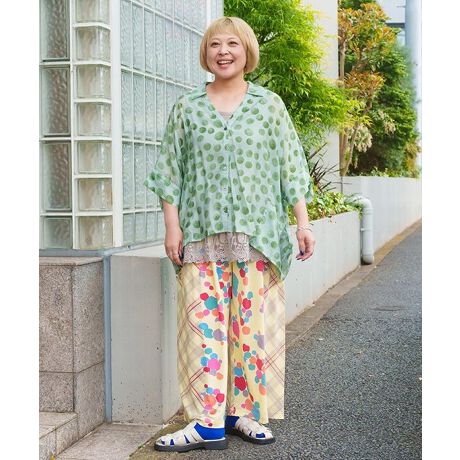 チェックとちぎり絵の切り替えが自然に縦を強調し、すっきりとした印象に仕上がります。