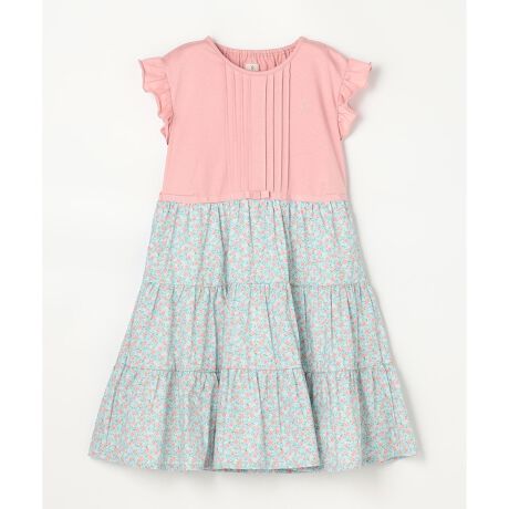 ■デザインフロントにタックをあしらったブラウスと、花柄スカートを合わせたようなドッキングワンピースです。ティアードデザインのスカート部分は、歩くたびにふんわりと広がり、思わずくるくると回りたくなるようなロマンティックなシルエットに仕上げました。