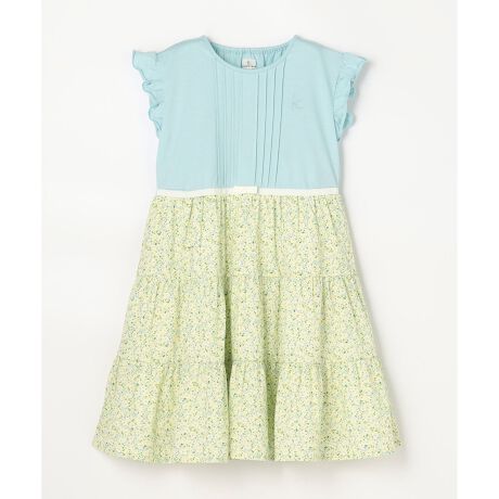 ■デザインフロントにタックをあしらったブラウスと、花柄スカートを合わせたようなドッキングワンピースです。ティアードデザインのスカート部分は、歩くたびにふんわりと広がり、思わずくるくると回りたくなるようなロマンティックなシルエットに仕上げました。