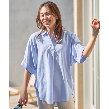 1枚で着映え&快適!多機能が嬉しい抜け感スキッパーブラウス