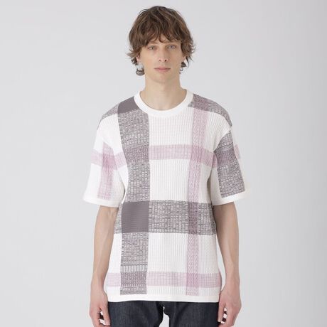 ・全面にクレストブリッジチェックをあしらった、存在感あるジャカードニットTシャツ。