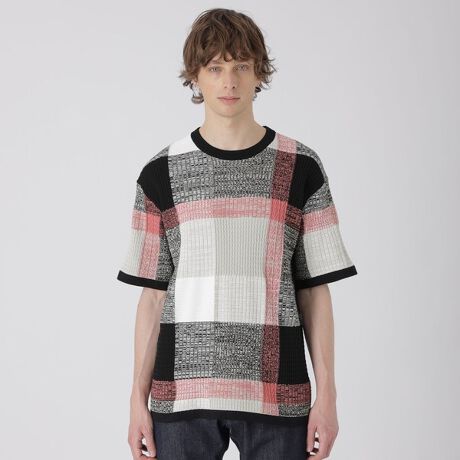 【編み柄で魅せる、立体的なクレストブリッジチェック。軽くて上品な、ブラックレーベルならではのニットTシャツ。】