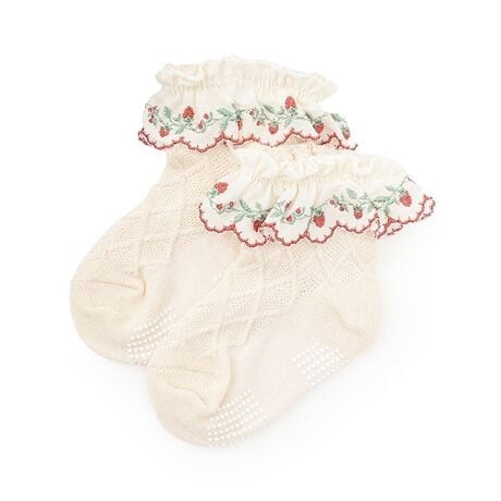 野イチゴをあしらったレースフリルが可愛らしいソックスです。