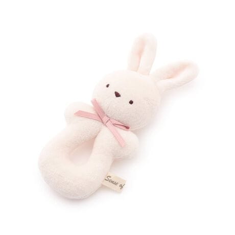 パイル生地の表面をカットしたなめらかな手触りのラトルです。