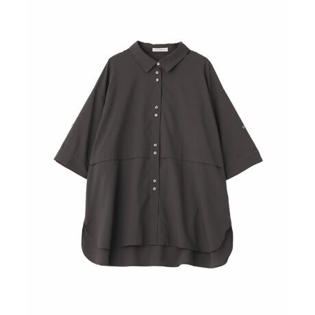 遮熱機能を備えた素材で、暑い季節も快適に過ごせる五分袖シャツです。さらりとした軽やかな着心地で、外出時の不快感をやわらげてくれます。フロントに施されたタックが自然な立体感を生み、シンプルながらも上品な印象に仕上がっています。ゆったりとしたシルエットと五分袖デザインで、体のラインを拾いにくくリラックスして着用できるのも魅力です。ラウンドカットの裾がやさしい抜け感を演出し、パンツにもスカートにも合わせやすく幅広いスタイリングに活躍します。