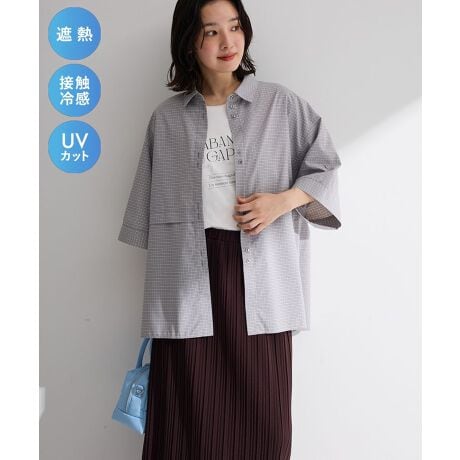 遮熱機能を備えた素材で、暑い季節も快適に過ごせる五分袖シャツです。さらりとした軽やかな着心地で、外出時の不快感をやわらげてくれます。フロントに施されたタックが自然な立体感を生み、シンプルながらも上品な印象に仕上がっています。ゆったりとしたシルエットと五分袖デザインで、体のラインを拾いにくくリラックスして着用できるのも魅力です。ラウンドカットの裾がやさしい抜け感を演出し、パンツにもスカートにも合わせやすく幅広いスタイリングに活躍します。