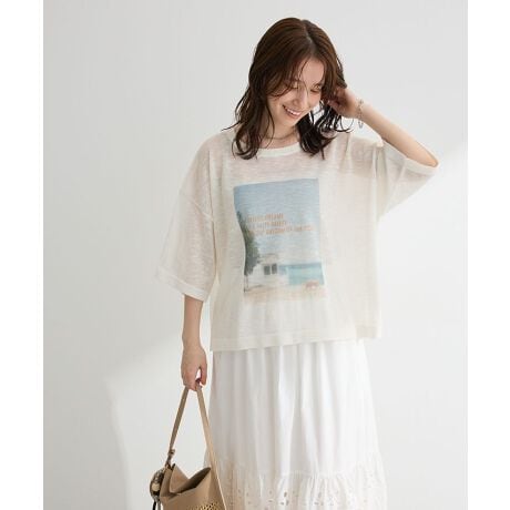やわらかなシアーニットにフォトプリントをあしらい、軽やかで洗練された印象に仕上げた一枚です。透け感のある素材が程よい抜け感を演出し、インナーとのレイヤードでさまざまな表情を楽しめます。ゆったりとしたオーバーサイズシルエットは体のラインをさりげなくカバーし、リラックス感のある着心地です。サイドスリット入りで動きやすく、パンツにもスカートにも合わせやすいのが魅力です。日常使いからお出かけまで幅広く活躍し、コーディネートにこなれ感をプラスしてくれます。