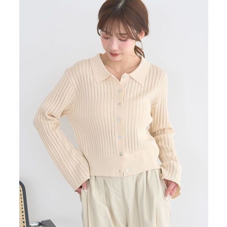 軽やかな透かし編みで魅せる大人フェミニンカーデ