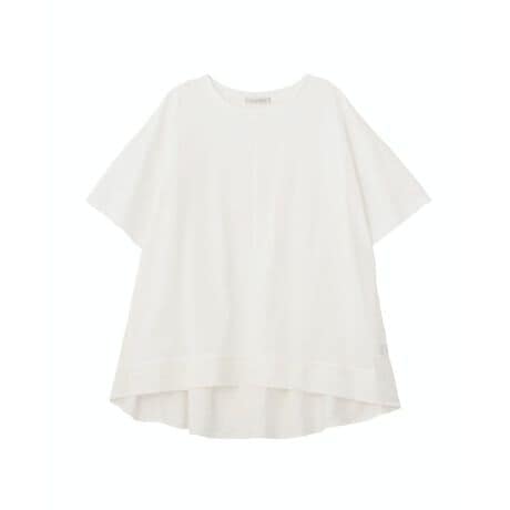 シンプルな中にデザイン性を感じられるドッキング仕様で、さっと着るだけでこなれた印象に仕上がる一枚です。バックタックが生み出すふんわりとしたシルエットは動くたびに揺れ、女性らしいやわらかな雰囲気を演出します。前後差のある丈感はスタイリングに奥行きを与え、体型カバーにも役立ちます。異素材の切り替えが程よいアクセントになり、シンプルなボトムと合わせるだけでバランスよく決まります。デイリー使いしやすく、幅広いシーンで活躍する頼れるアイテムです。