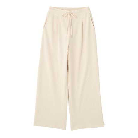 ひんやり軽やか、毎日穿きたくなる快適パンツ触れた瞬間にひんやりと感じる冷感素材で、暑い季節でも快適に過ごせる一本です。やわらかなスウェット生地ながらもすっきりとしたシルエットで、大人カジュアルな印象に仕上がります。ウエストはゴム仕様で着脱しやすく、紐で調整できるためフィット感も自在です。ゆったりとした穿き心地で動きやすく、長時間の外出やリラックスタイムにもぴったりです。シンプルなデザインでトップスを選ばず、日常のさまざまなコーディネートに活躍します。透け感[なし]