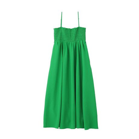 表面に凹凸のあるサッカー素材を使用し、肌離れがよく暑い季節でもさらりと快適に着用できます。胸元のシャーリングがやさしくフィットし、締め付け感を抑えながら自然なシルエットを演出します。華奢なストラップが抜け感をプラスし、1枚での着用はもちろん、Tシャツやシアートップスとのレイヤードスタイルも楽しめます。軽やかな着心地で動きやすく、デイリーからお出かけまで幅広く活躍します。シンプルながらも表情のある素材感で、コーディネートにさりげないアクセントを添えてくれます。体のラインを拾いにくく、リラックス感のある着こなしが叶います。
