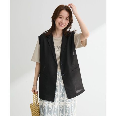 通気性の良いメッシュ素材を使用したジレは、軽やかな着心地で季節の変わり目にも快適に着用できます。フレンチスリーブデザインが肩まわりを自然にカバーし、すっきりとした印象を演出します。シンプルなインナーに重ねるだけで、コーディネートに奥行きが生まれ、ぐっと洗練された雰囲気に仕上がります。シワになりにくい素材感で扱いやすく、デイリー使いにもぴったりです。パンツにもスカートにも合わせやすく、オンオフ問わず幅広いシーンで活躍します。
