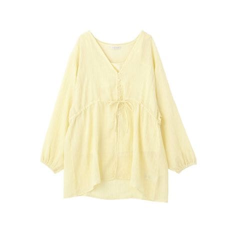重ねて美しく、単品でも映える上品セット軽やかなブラウスとシンプルなタンクトップがセットになり、着こなしの幅が広がるアイテムです。透け感のある素材が涼しげで、インナーとのレイヤードが自然に決まります。Vネックデザインが顔まわりをすっきりと見せ、抜け感のある上品な印象に仕上げます。ウエストのリボンでシルエットの調整ができ、その日の気分やコーディネートに合わせた着こなしが楽しめます。それぞれ単品でも使えるため、手持ちのアイテムとも合わせやすく、日常使いからお出かけまで活躍します。軽やかな着心地で動きやすく、快適さときちんと感を両立した一枚です。透け感[あり]