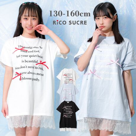 裾レースワンピース トップス 半袖 子供服 女の子 小学生 中学生